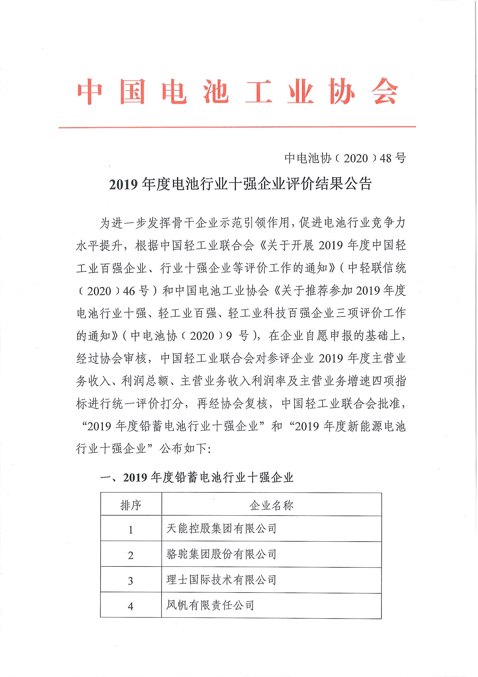 2020年7月31日,中國電池工業(yè)協(xié)會發(fā)布《2019年度電池行業(yè)十強企業(yè)評價結果公告》,維科技術再次位列新能源電池行業(yè)十強企業(yè)。