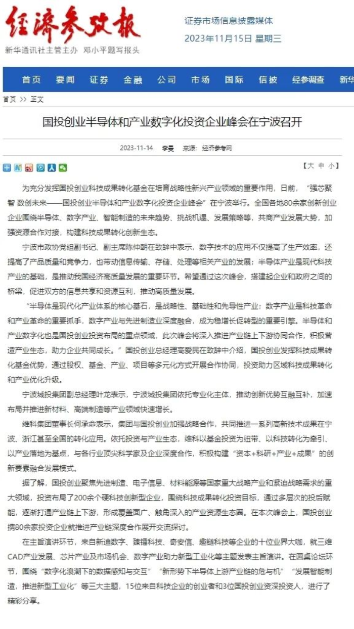 強(qiáng)芯聚智 數(shù)創(chuàng)未來(lái)!國(guó)投創(chuàng)業(yè)半導(dǎo)體和產(chǎn)業(yè)數(shù)字化投資企業(yè)峰會(huì)召開——獲多家主流媒體宣傳報(bào)道