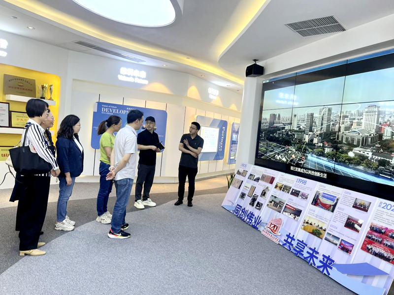唐院長一行首先參觀了維科集團展廳。維科集團董事會秘書、總干部部副總經(jīng)理張翔全程陪同講解。重點介紹了維科集團起源120周年的發(fā)展歷程,以及“不忘纖維科技初心,聚焦綠色能源科技”的使命愿景,詳細(xì)介紹了維科新材料、新能源、新物聯(lián)的產(chǎn)業(yè)布局及發(fā)展情況。