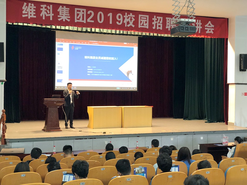 2018年11月6日,維科集團(tuán)2019年校園招聘正式啟動,首站校招宣講會在寧波大學(xué)舉行,集團(tuán)總部、東海租賃、維科電池、鴨鴨羽絨、維科家紡、嘉豐物資等用人單位聯(lián)合參會,集團(tuán)副總裁蘇總親自參會并做宣講。此次校招共推出投資、研發(fā)、職能類等10個大類30余個需求崗位,共收到學(xué)生簡歷90余份,研究生學(xué)歷占46%。